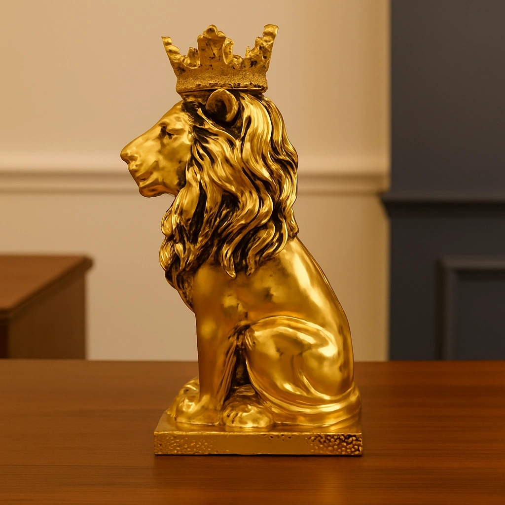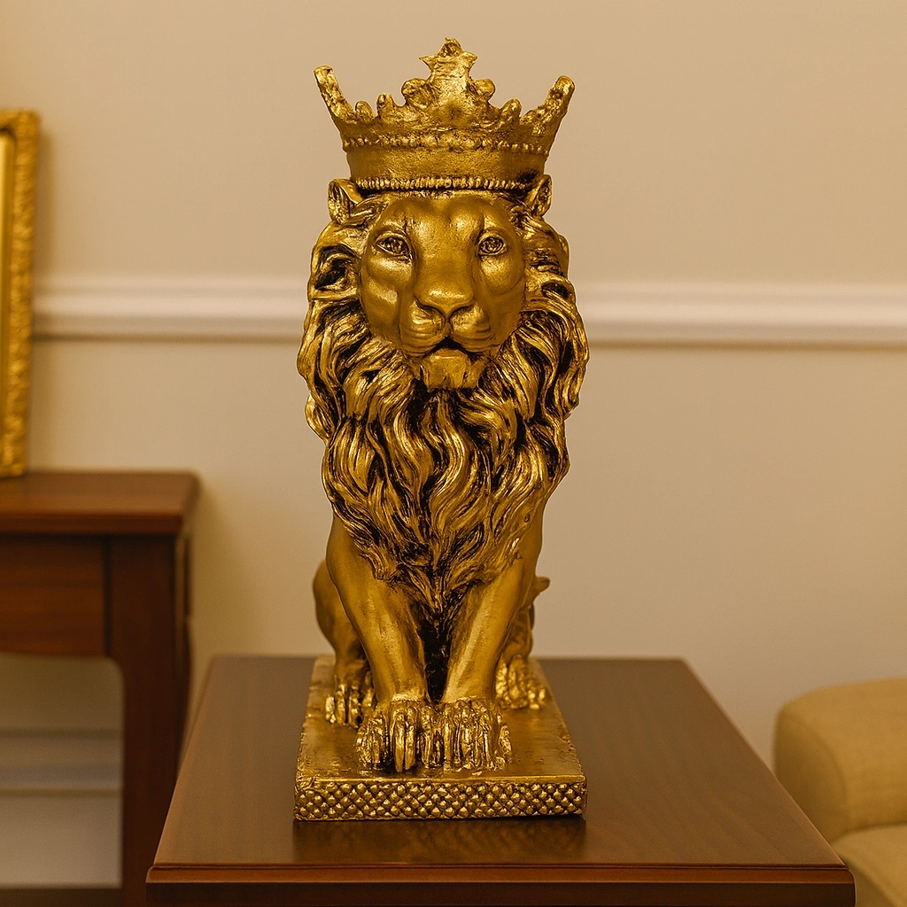 Ürün Detaylı Açıklama: Polyester Taçlı Aslan Figürü