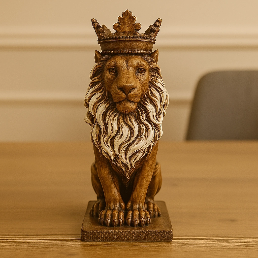 Bu polyester taçlı aslan figürü, bulunduğu ortama sadece estetik değil aynı zamanda güçlü bir sembolik değer de katmaktadır.